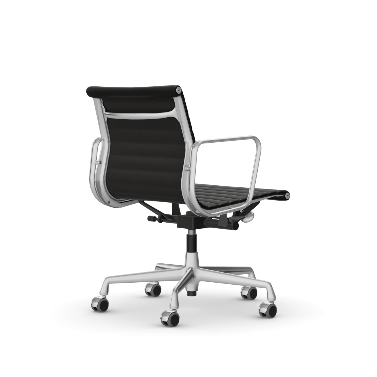 Eames Aluminium Group EA 117 mit Armlehnen, Leder nero