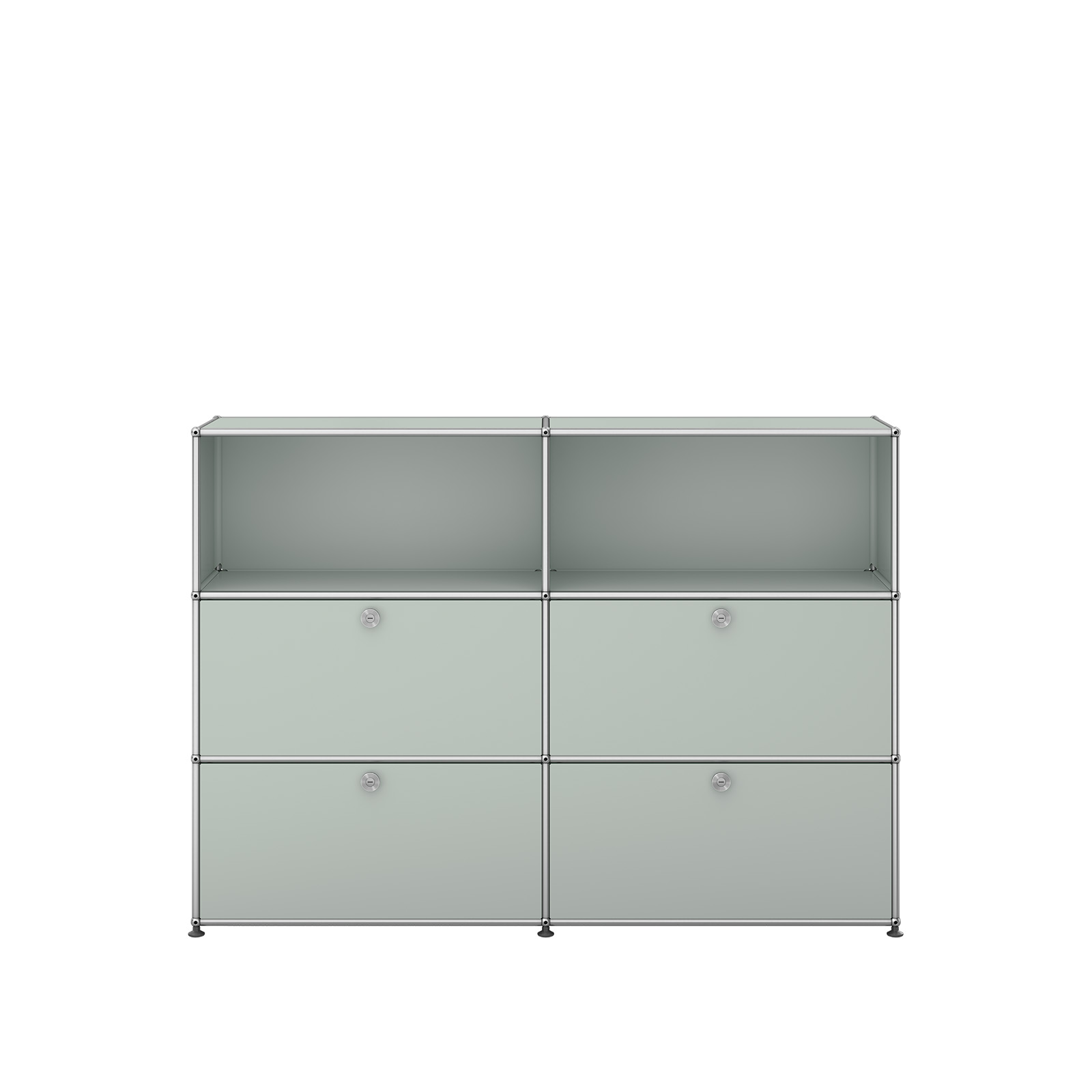 Das USM Haller Möbelsystem bietet eine einzigartige Kombination aus Flexibilität und zeitlosem Design. Es basiert auf einem einfachen, aber genialen Aufbau: Verchromte Stahlrohre bilden das Grundgerüst, pulverbeschichtete Metalltablare dienen als Verkleidung, und verchromte Messingkugeln verbinden alles zu einem stabilen und anpassbaren Möbelstück. Diese modulare Bauweise ermöglicht es Ihnen, Ihre Möbel ganz nach Ihren individuellen Bedürfnissen zu gestalten.