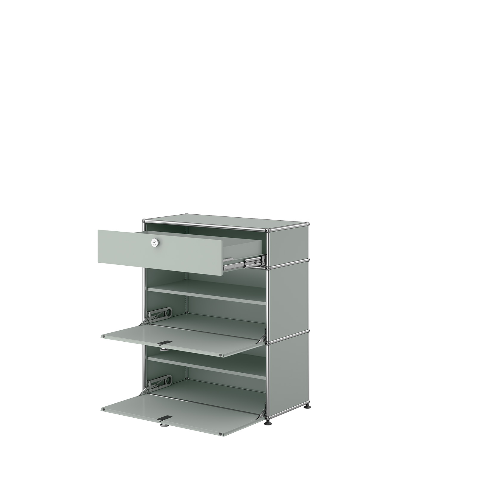 USM Haller Highboard M mit zwei Klapptüren, zwei Zwischentablaren und einer Ausziehtür mit Einlegerahmen, inkl. Wandverankerung,
