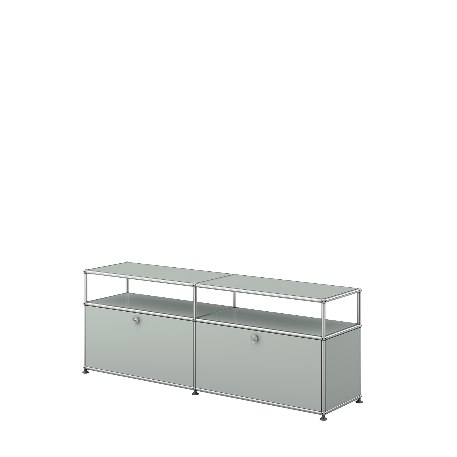 Das USM Haller Möbelsystem bietet eine einzigartige Kombination aus Flexibilität und zeitlosem Design. Es basiert auf einem einfachen, aber genialen Aufbau: Verchromte Stahlrohre bilden das Grundgerüst, pulverbeschichtete Metalltablare dienen als Verkleidung, und verchromte Messingkugeln verbinden alles zu einem stabilen und anpassbaren Möbelstück. Diese modulare Bauweise ermöglicht es Ihnen, Ihre Möbel ganz nach Ihren individuellen Bedürfnissen zu gestalten.