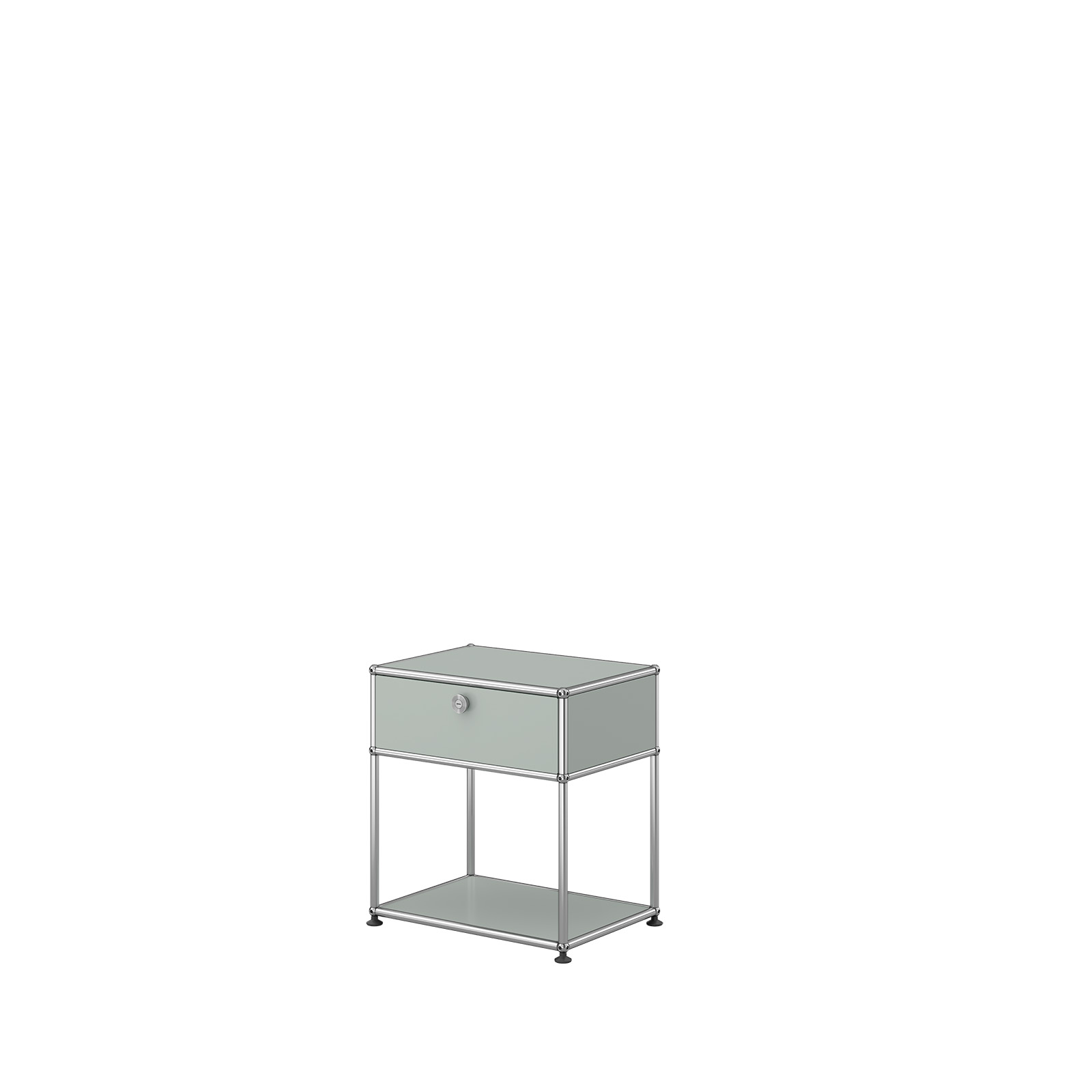 Klein aber fein. Dieses sehr minimalistische USM Möbel strahlt Eleganz und Simplizität aus. Sowohl als Nachtkästchen als auch als Beistellmöbel macht es eine sehr gute Figur. Hinter der Klapptür kann man verstauen, was nicht zu sehen sein soll.